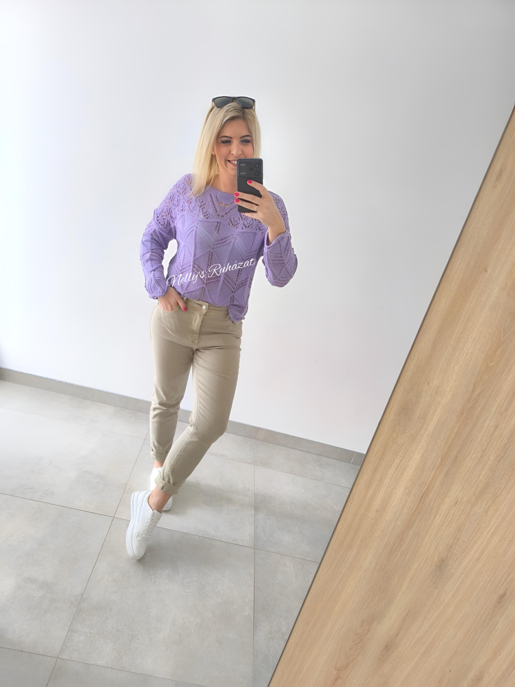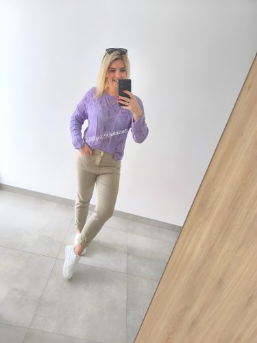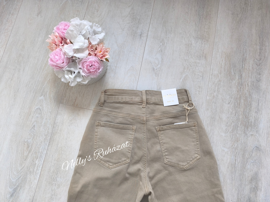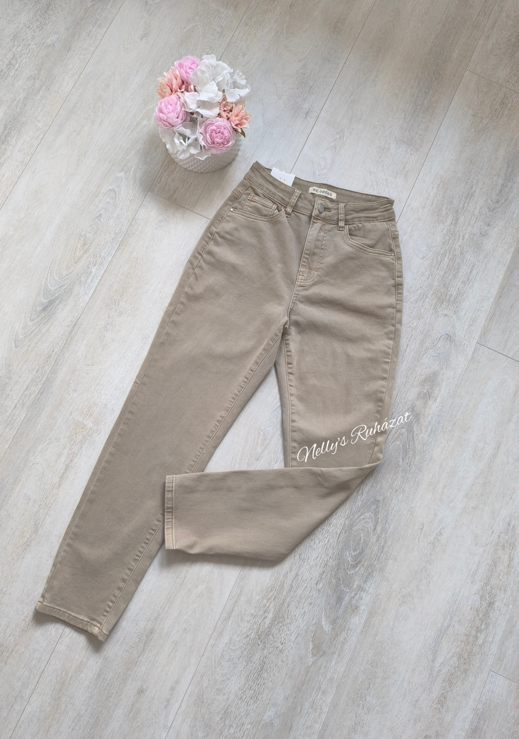Letisztult,nőies fazonú bézs nadrág,amely tökéletes választás a mindennapokra.Magas derekú szabása szépen formál,kényelmes anyaga pedig egész napos komfortot biztosít.Könnyen kombinálható sportos és elegáns szettekhez is-igazi alapdarab minden gardróbban.