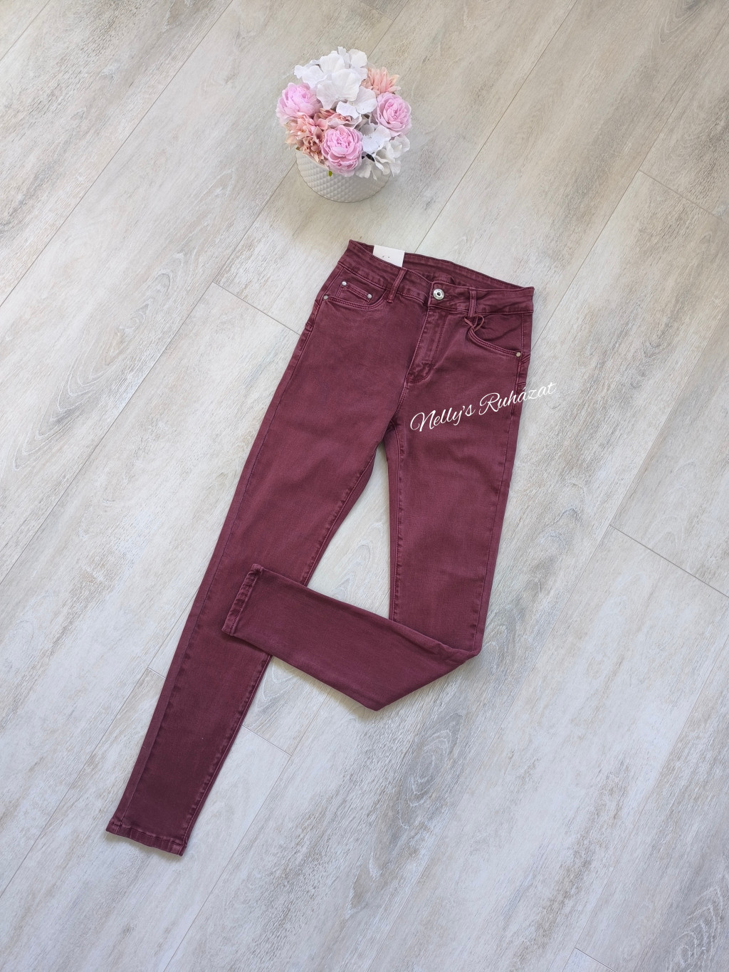 Rugalmas burgundi nadrág,amely tökéletes választás a mindennapokra.Könnyen kombinálható sportos és elegáns szettekhez is-igazi alapdarab minden gardróbban.