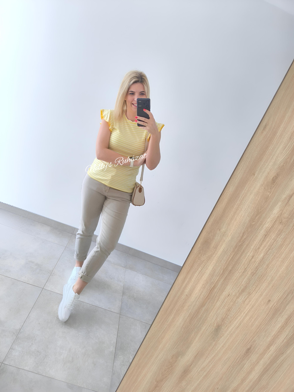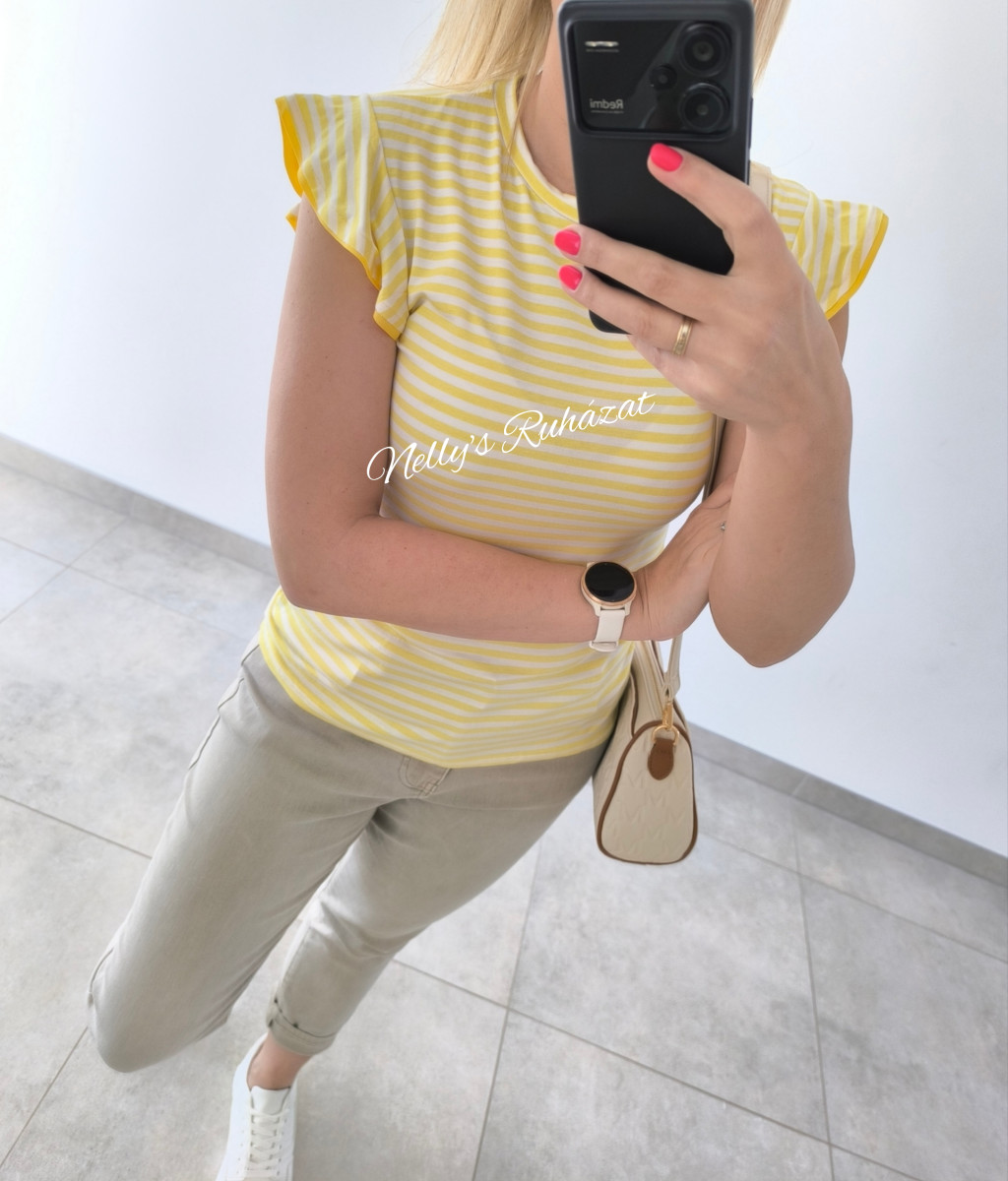 Puha pamutból készült csajos póló,ami egész nap kényelmes .Egyszerű fazonja miatt ,tökéletes farmerrel vagy sportos szettekhez is.