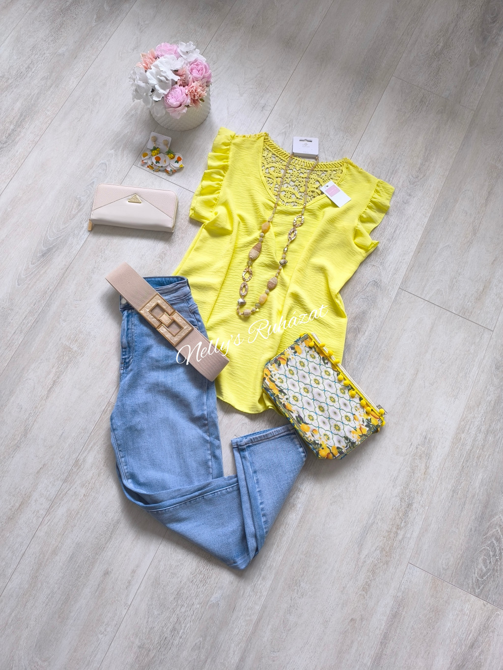 Felső csipkés hátrésszel és finom fodros ujjakkal,könnyed,csajos darab, ami jól kombinálható.