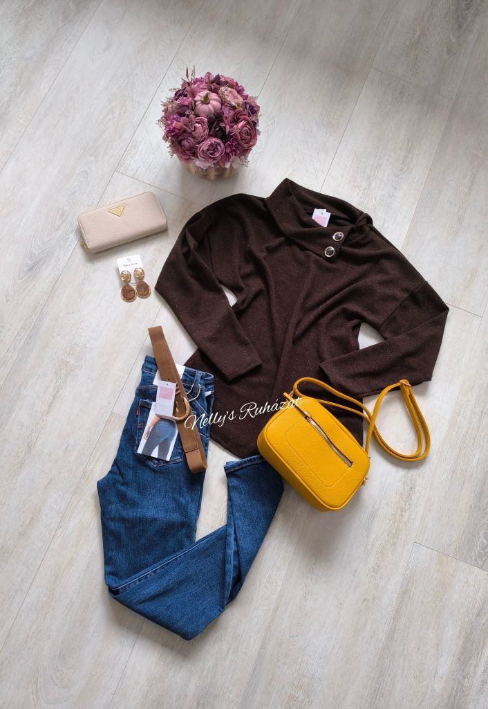 Puha anyagú felső ,lehajtható garbó résszel és 2 díszgombbal.Szín: Sötétbarna
