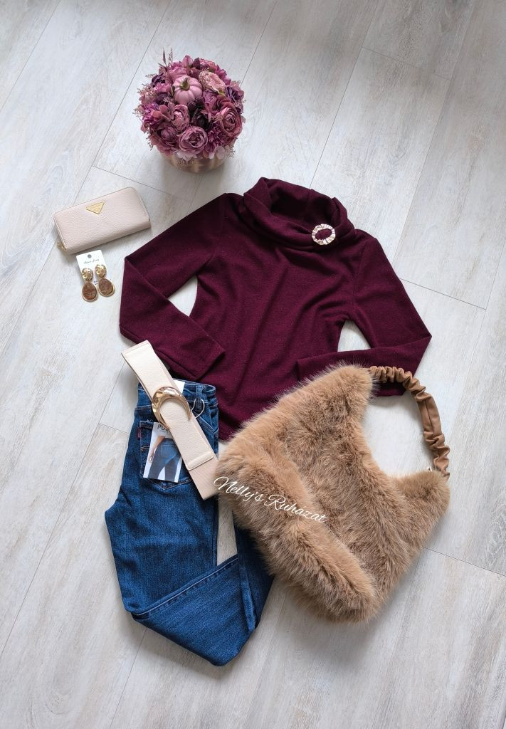 Puha anyagú felső garbó nyakkal,amelyet egy mutatós díszcsat tesz különlegessé.