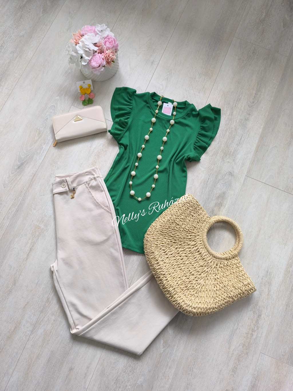 Finoman bordázott felső,fodros ujjakkal-tökéletes választás,ha egyszerre szeretnél kényelmes és csinos lenni.Könnyed,nőies darab,ami farmerrel párosítva is azonnal feldobja a megjelenésedet.