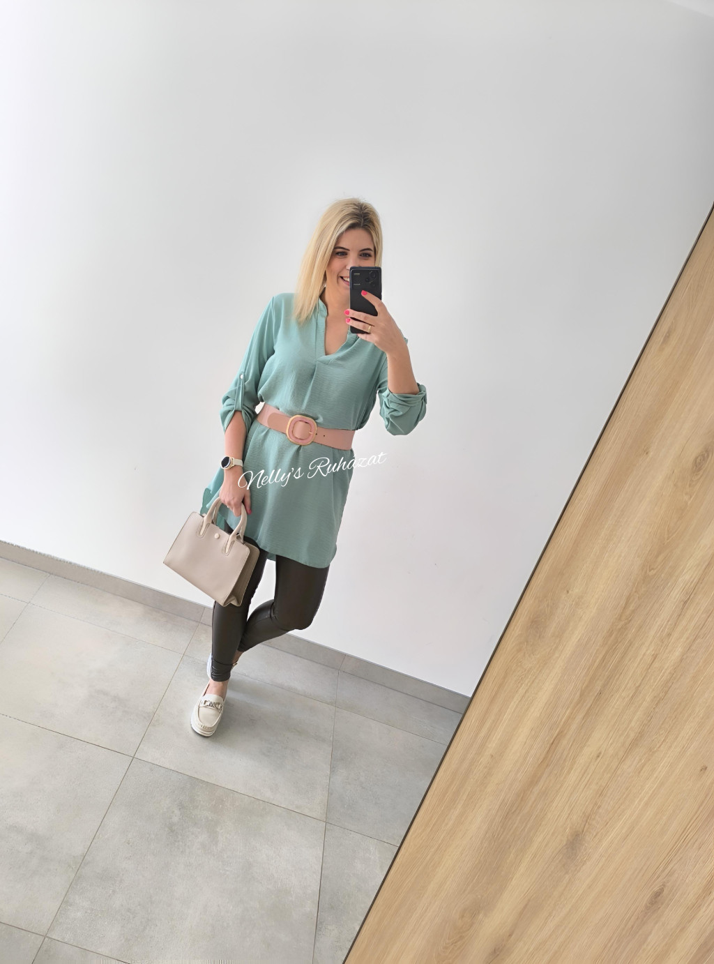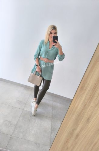 Nőies, ingruha övvel karcsúsítja az alakot,míg hátul hosszított szabása kényelmes viseletet biztosít.3/4 gombolható ujja praktikus,így könnyen alakítható az évszakhoz.