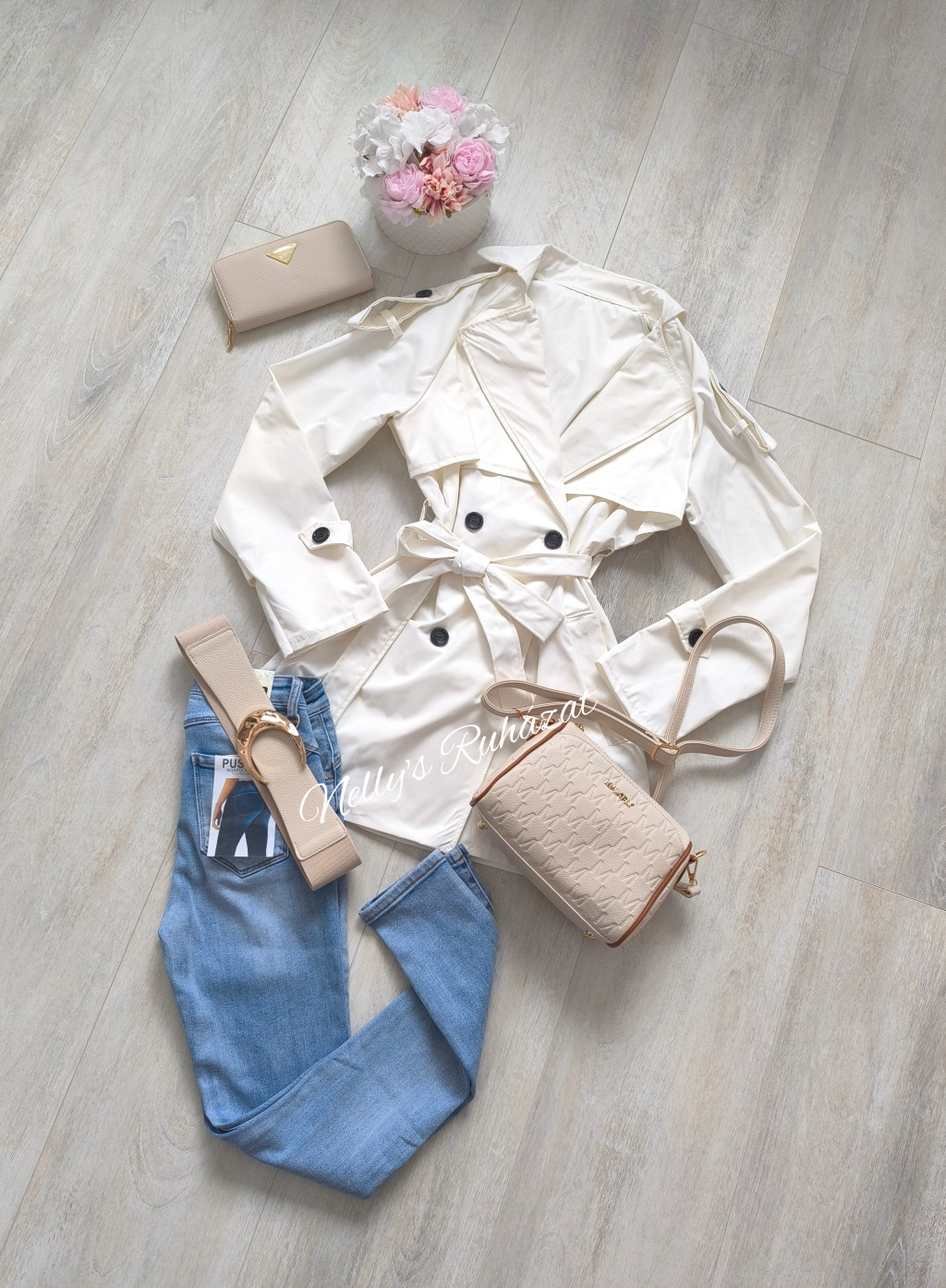 Könnyű tavaszi kabát derékmegkötővel szépen formálja az alakot,miközben tökéletes védelmet ad a hűvösebb napokon.