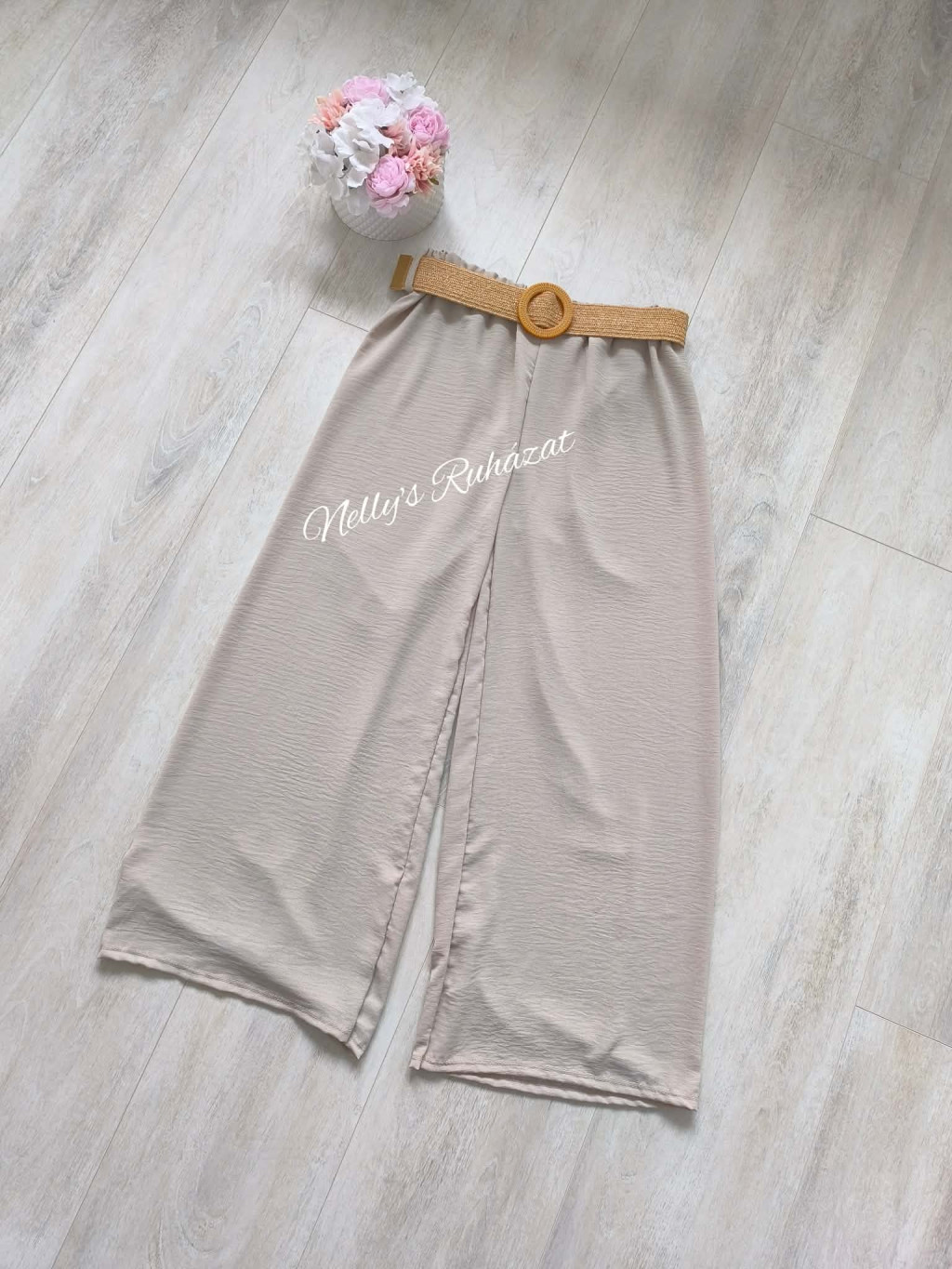 Laza fazonú  vékony nadrág övvel,rugalmas anyagból készült.Remekül kombinálható egy basic felsővel és sportcipővel.
