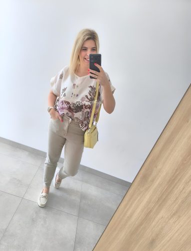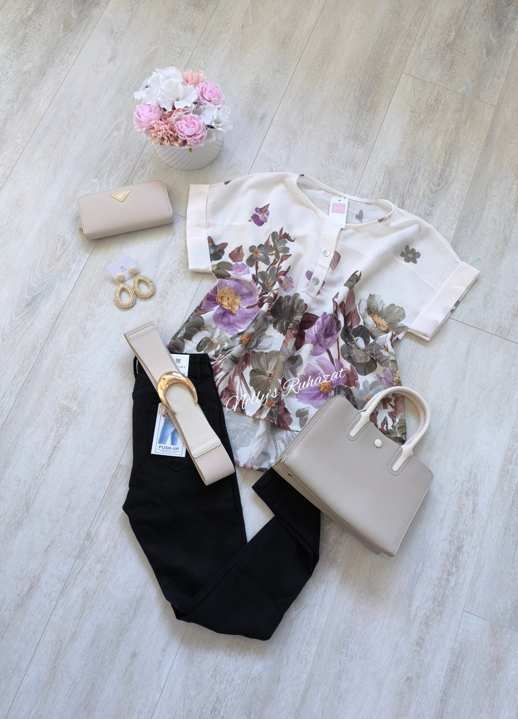 Virágmintás,könnyed felső,gombos nyakkal,csinos megjelenést add minden szetthez.