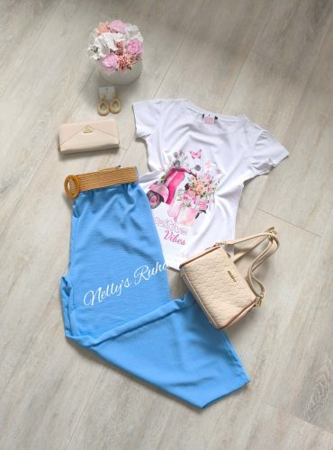 Laza fazonú  vékony nadrág övvel,rugalmas anyagból készült.Remekül kombinálható egy basic felsővel és sportcipővel.