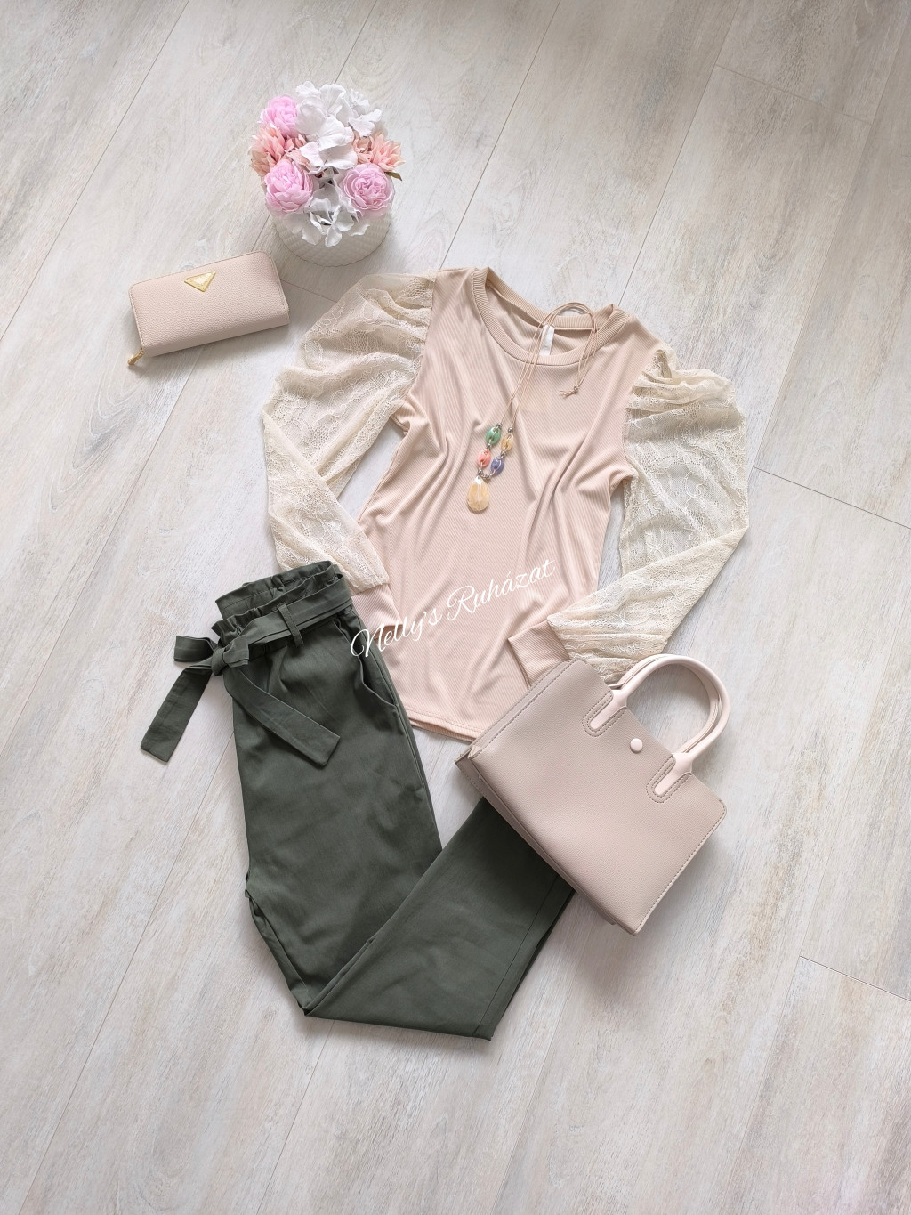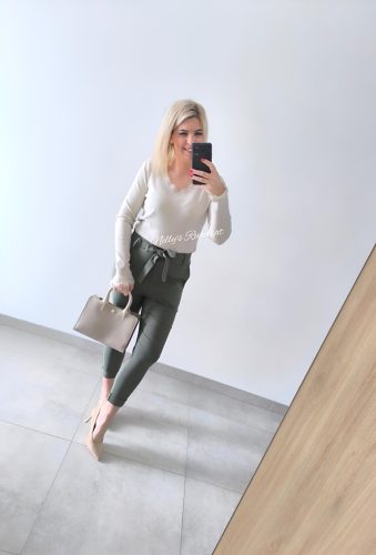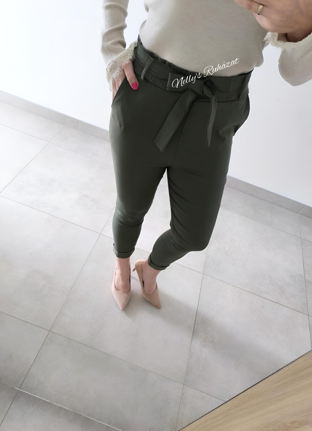 Rugalmas,kényelmes anyagú nadrág gumis derékkal és masnival.