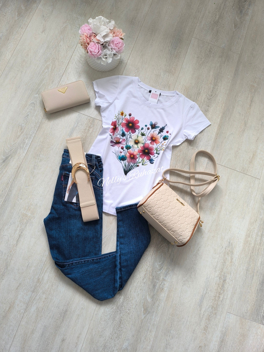 Puha pamutból készült csajos póló,ami egész nap kényelmes .Egyszerű fazonja miatt ,tökéletes farmerrel vagy sportos szettekhez is.