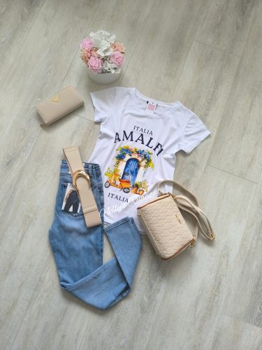 Puha pamutból készült csajos póló,ami egész nap kényelmes .Egyszerű fazonja miatt ,tökéletes farmerrel vagy sportos szettekhez is.