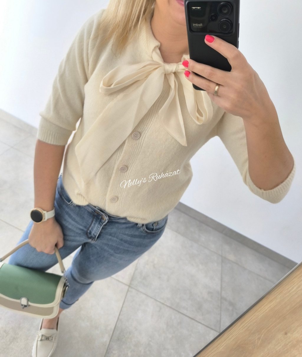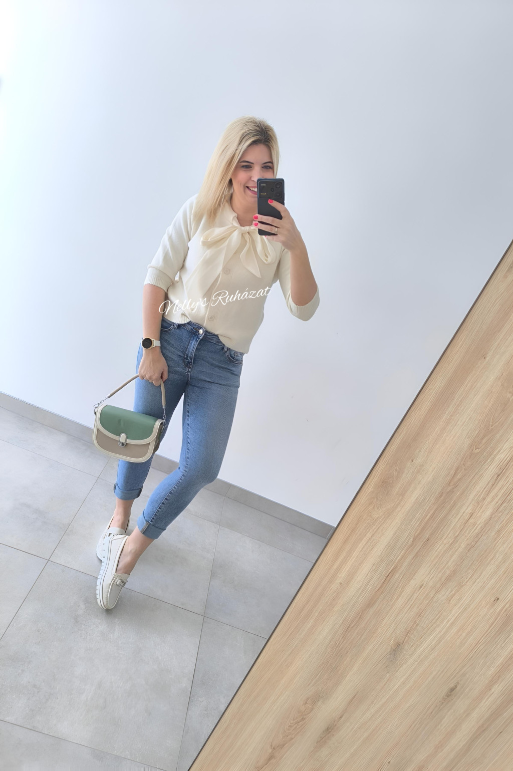 Nőies rövid ujjú felső könnyű,kellemes tapintású anyagból.A nyaknál található masnis rész elegáns megjelenést add .Laza szabása miatt sportosan is felhúzható.