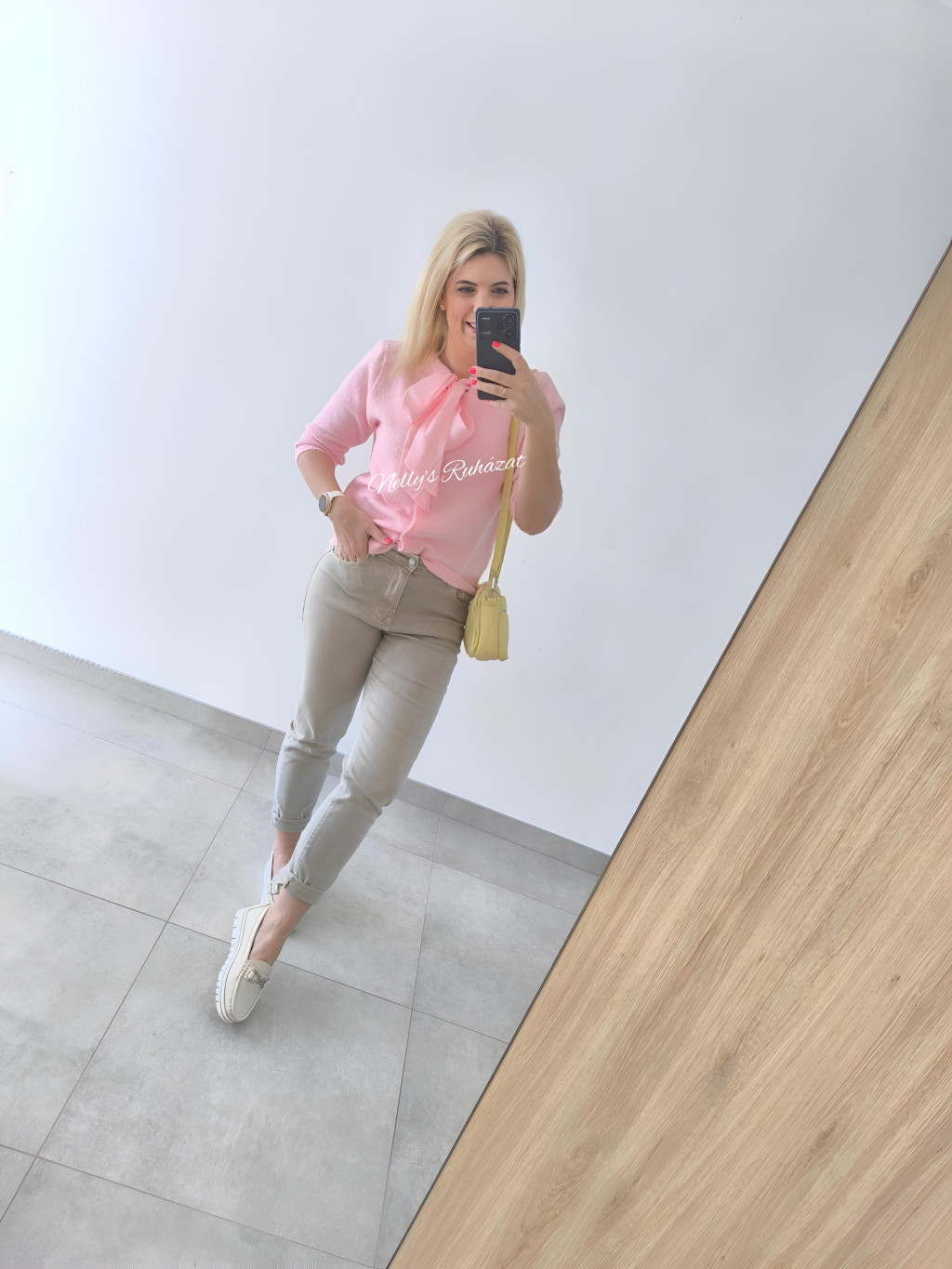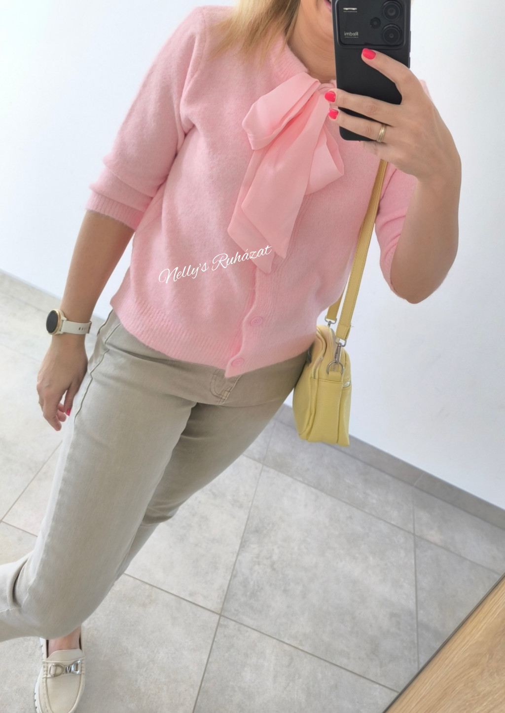 Nőies rövid ujjú felső könnyű,kellemes tapintású anyagból.A nyaknál található masnis rész elegáns megjelenést add .Laza szabása miatt sportosan is felhúzható.