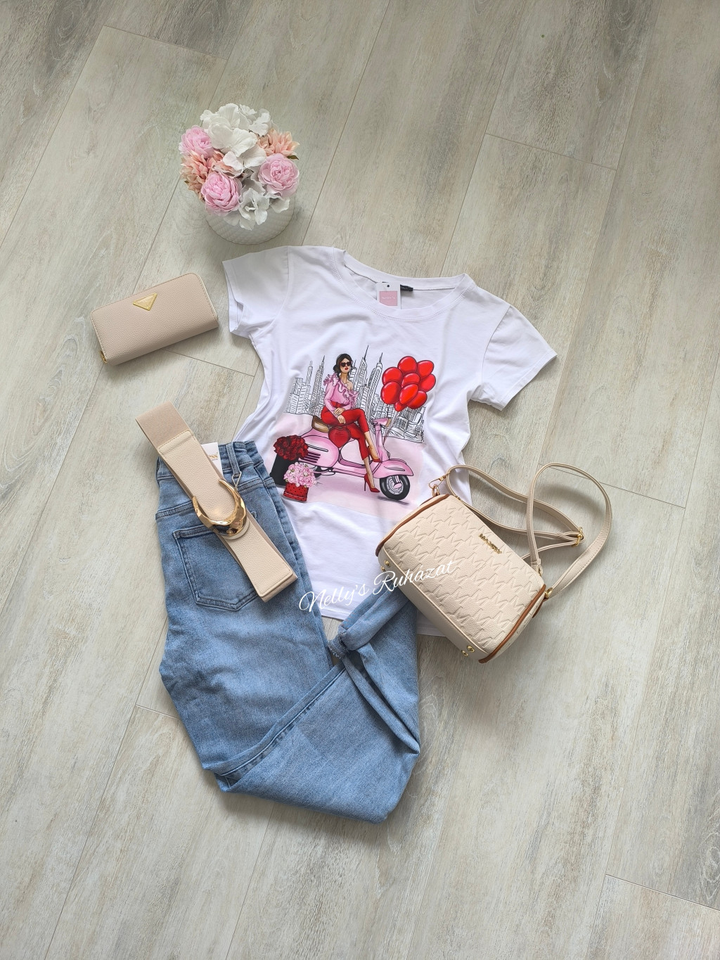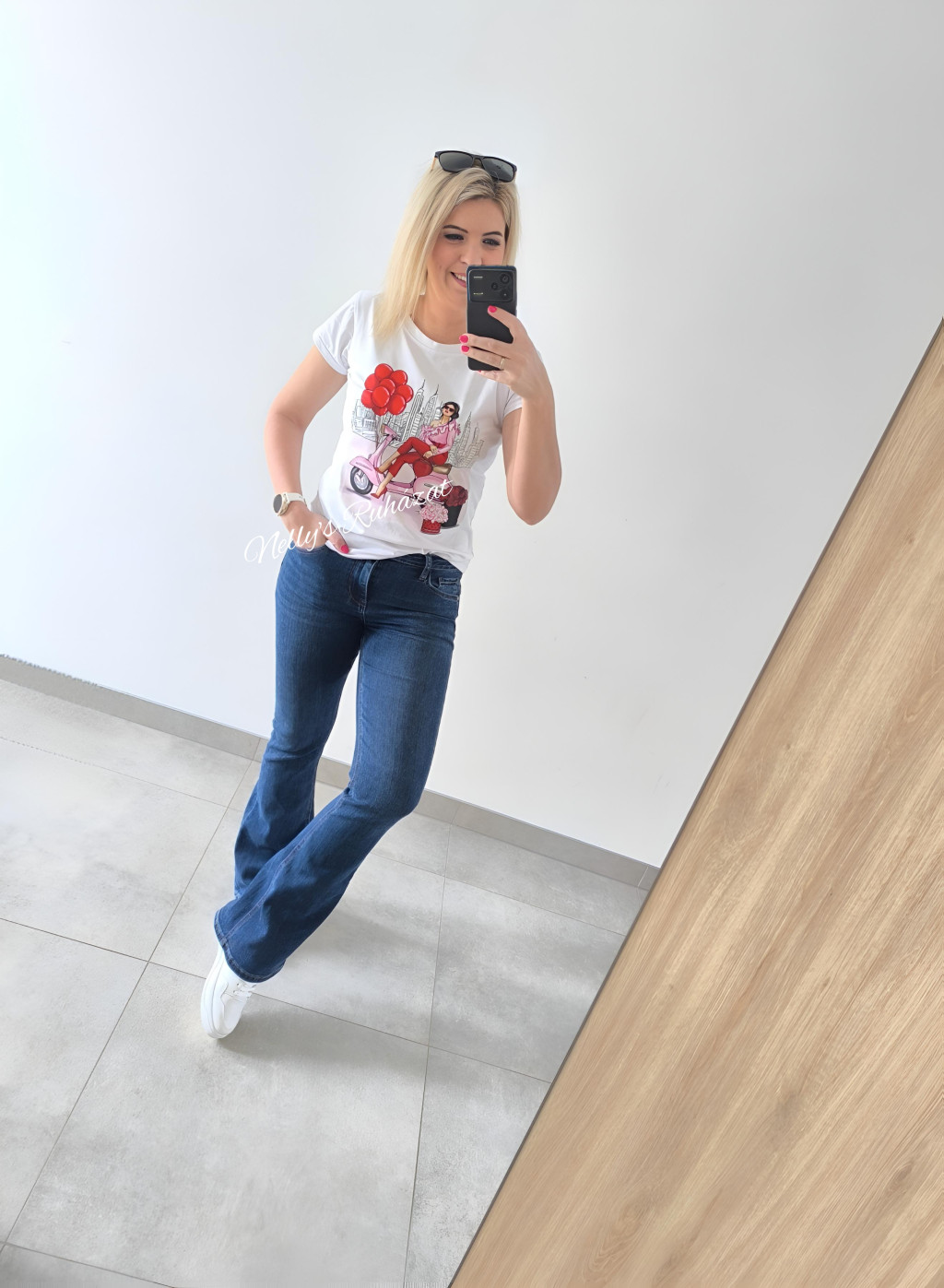 Puha pamutból készült csajos póló,ami egész nap kényelmes .Egyszerű fazonja miatt ,tökéletes farmerrel vagy sportos szettekhez is.