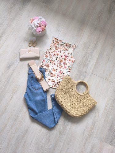 Vékony pántos trikó-Virágos