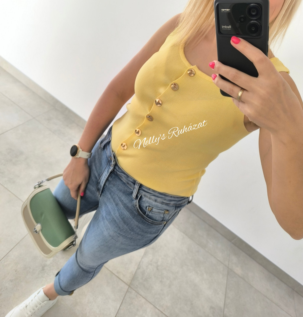 Ujjatlan gombos felső- Sárga