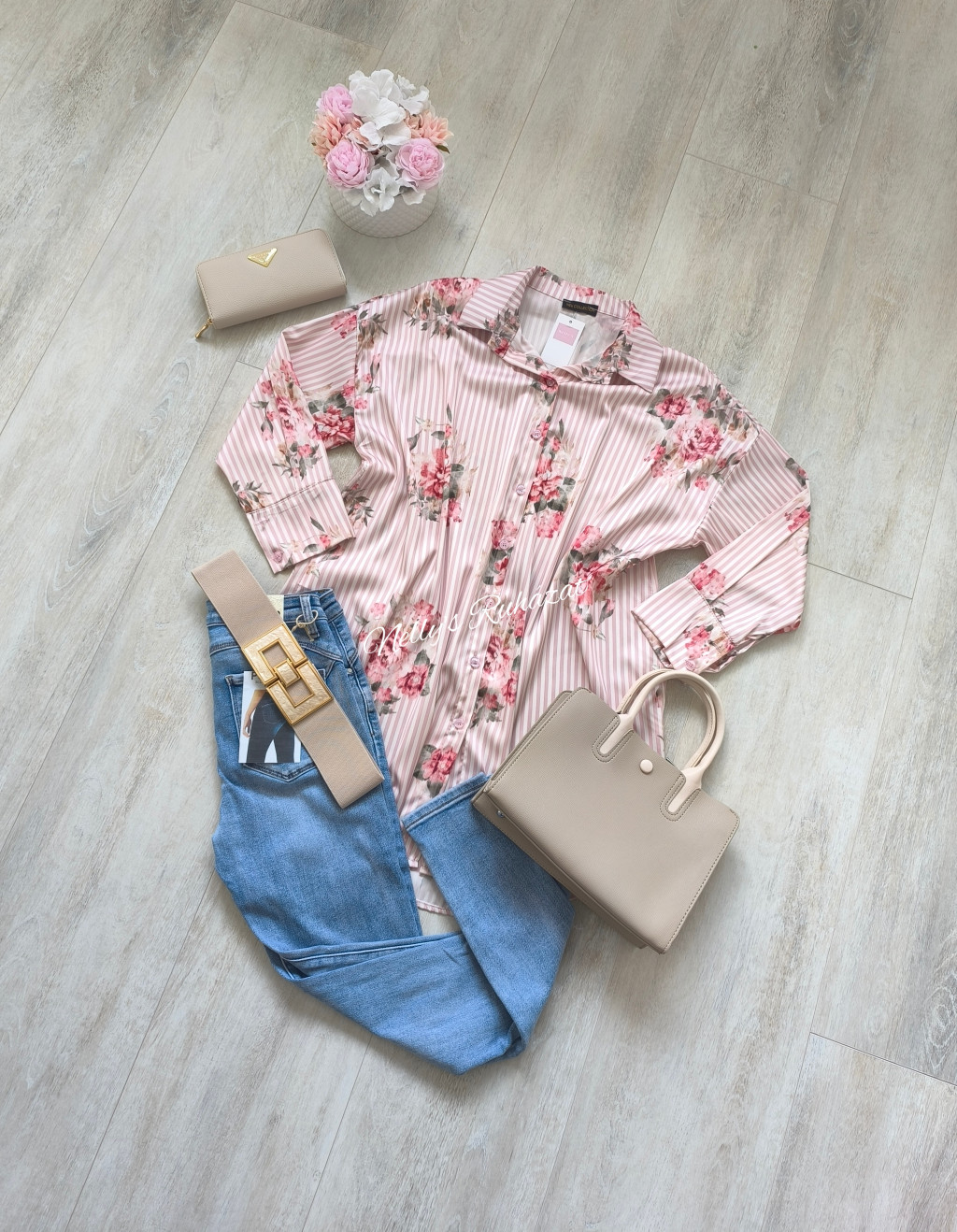 Modern,virágmintás ing finom csíkos alapon,amely friss elegáns megjelenést biztosít.Kényelmes szabásának köszönhetően egész napos viseletre is ideális,könnyen kombinálható basic darabokkal is.