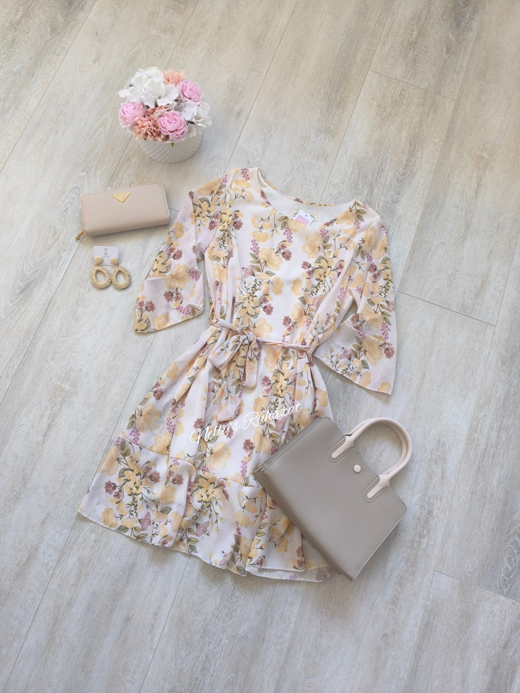 Virágos ruha légies anyagból.Derékrésznél megkötővel.
