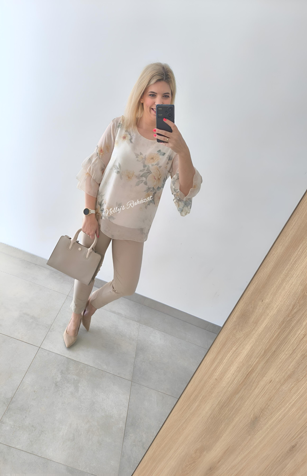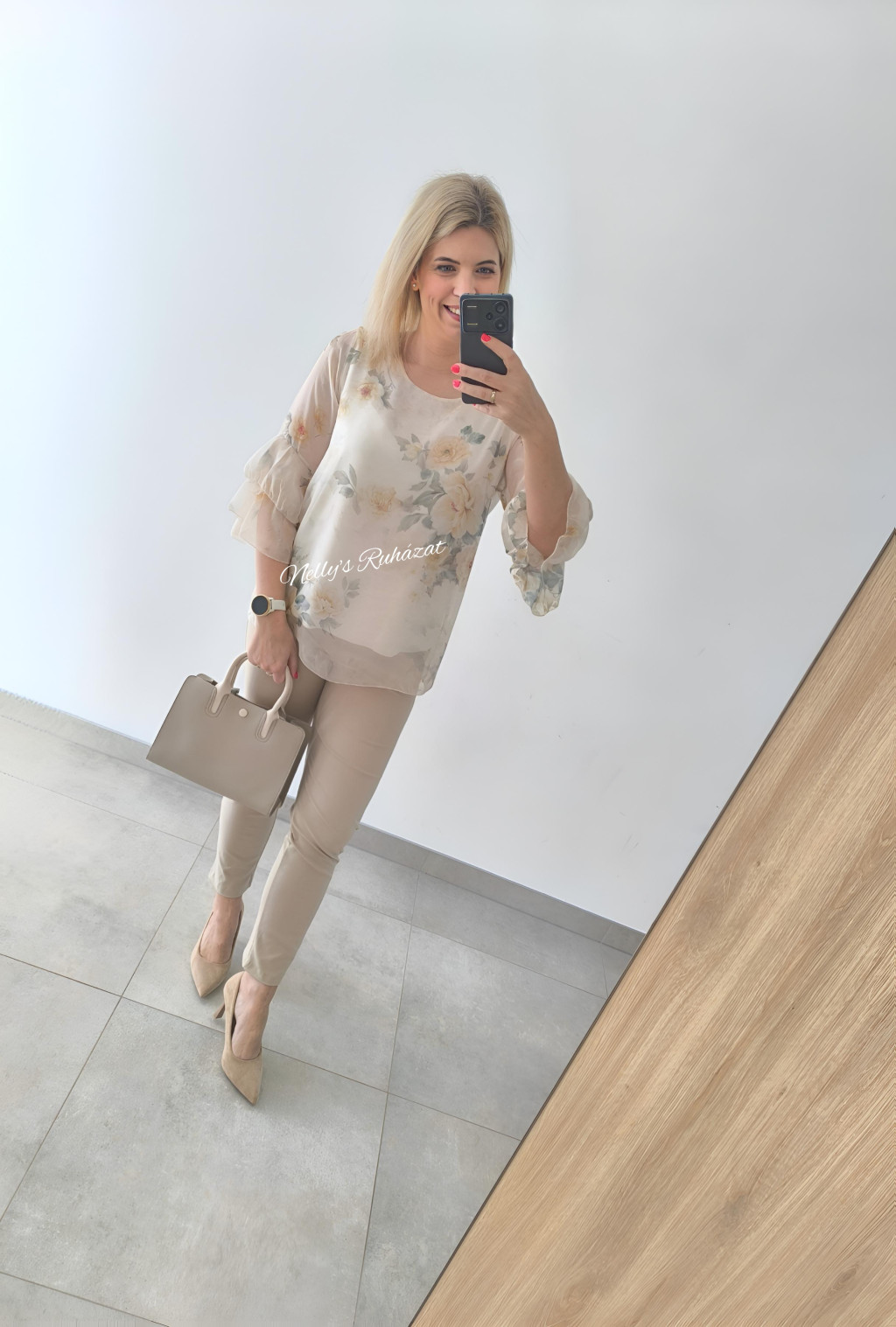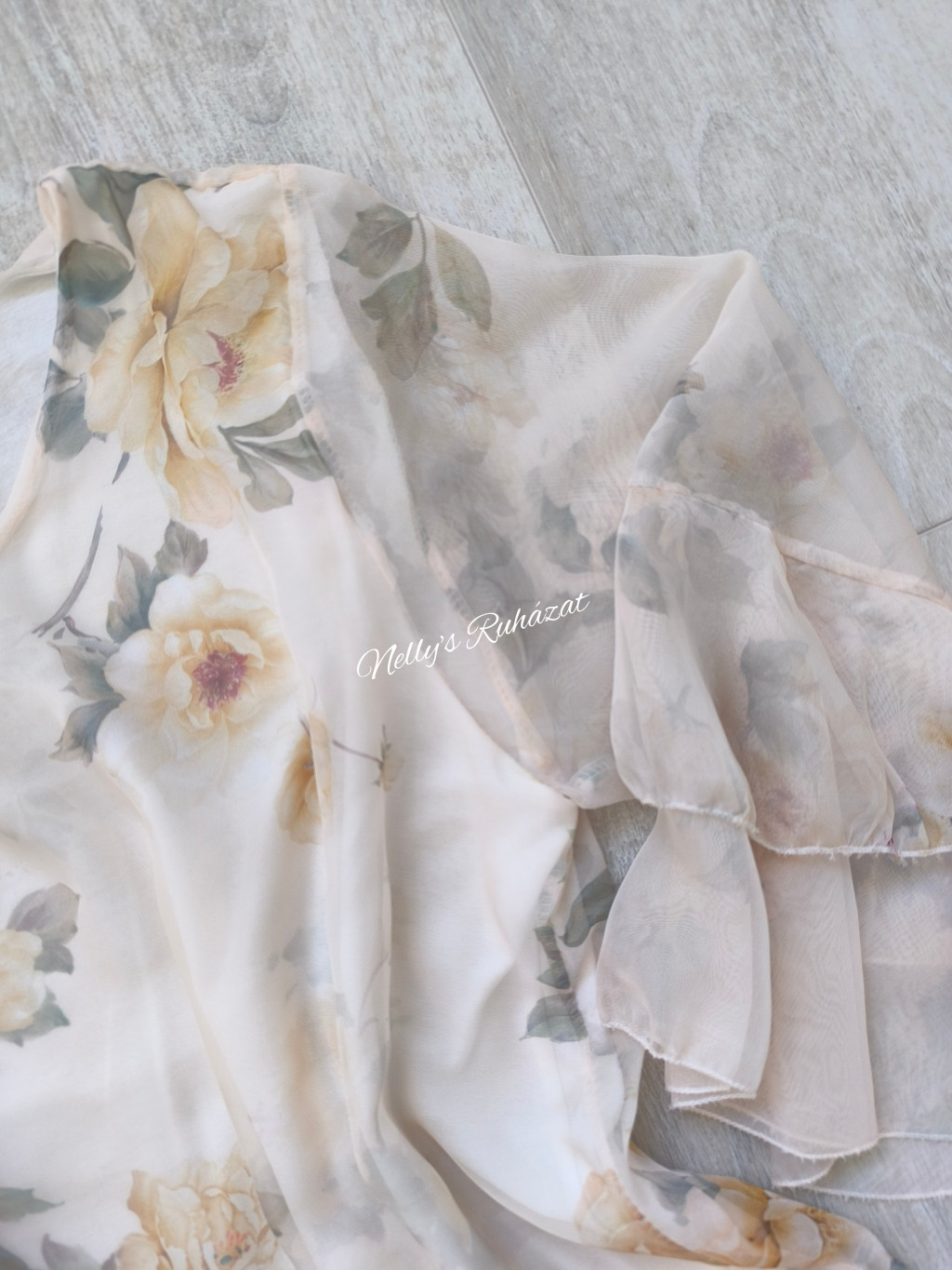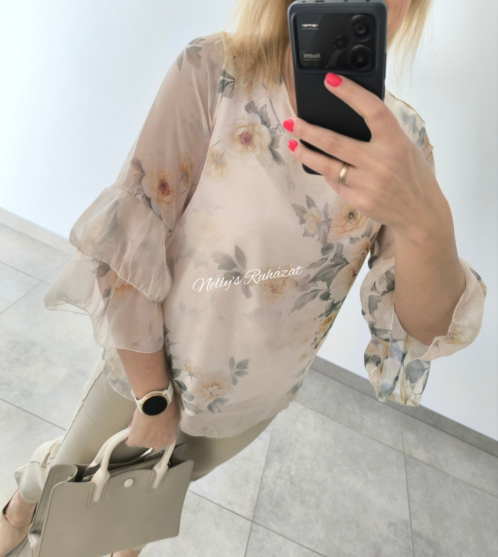 Könnyő,lenge virágmintás felső 3/4 ujjú,amely  elegáns megjelenést biztosít.Kényelmes szabásának köszönhetően egész napos viseletre is ideális,könnyen kombinálható.
